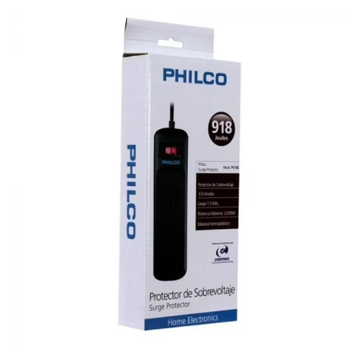Alargador Protector Sobrevoltaje PHILCO 918J 6 Posiciones 1.5 Metros con Switch