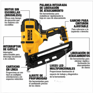 Clavadora DEWALT 20V BRUSHLESS MAX XR para clavos 5/8″ a 2 1/8″ Sin Baterías ni Cargador