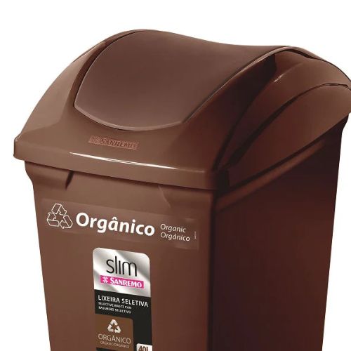 Este basurero San Remo de 40 litros con tapa vaivén en color café es ideal para la clasificación de residuos orgánicos o biodegradables, siguiendo códigos de color en sistemas de reciclaje. Su diseño práctico y liviano lo hace perfecto para hogares, oficinas o espacios educativos.
