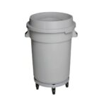 Basurero Plástico Redondo con Plataforma Móvil y Tapa Embudo Secowash – 100 L, Gris