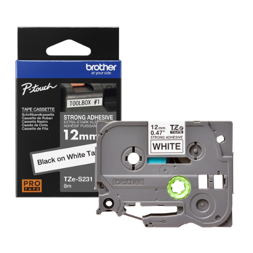 Brother TZe-S231 – Adhesivo extrarresistente – negro sobre blanco – rollo (1,2 cm x 8 m) 1 cinta(s) tipo laminado – para Brother PT-D210, D600, H110; P-Touch PT-1005, 1880, E800, H110; P-Touch Cube Plus PT-P710