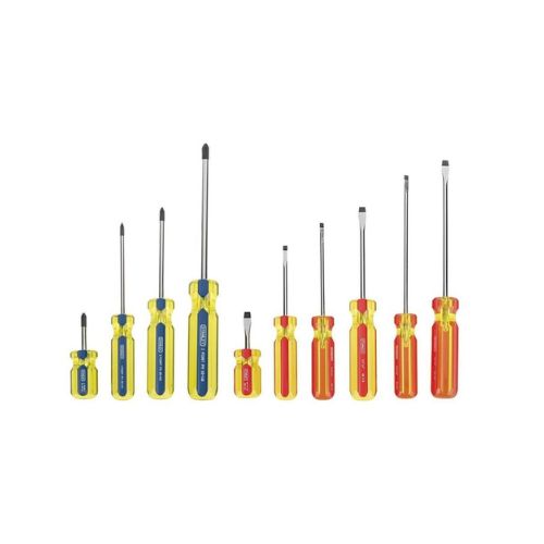 - 10 destornilladores mixtos, con puntas estándar, Phillips® y gabinete
