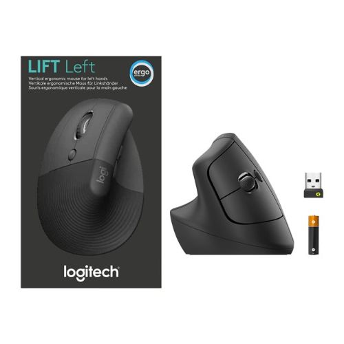 Logitech Lift Left Vertical Ergonomic Mouse – Ratón vertical – ergonómico – zurdo – 6 botones – inalámbrico – Bluetooth, 2.4 GHz – receptor de USB Logitech Logi Bolt – grafito