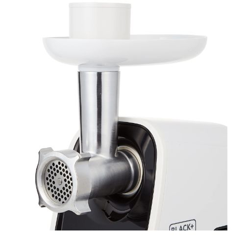 Moledora de Carne BLACK+DECKER® SCG400M2K-B2 de 1200W, cuerpo metálico, discos de corte, accesorios para embutidos y kibbe, función reversa y bandeja amplia. Ideal para molido eficiente en cocina técnica y preparación artesanal.