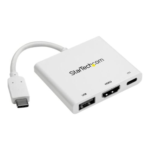 StarTech.com Adaptador Multifunción USB-C a HDMI 4K – Replicador de Puertos con Entrega de Potencia y Puerto USB-A – Blanco (CDP2HDUACPW) – Adaptador de vídeo – 24 pin USB-C macho a HDMI, USB Tipo A, 24 pin USB-C hembra – 60 mm – blanco – compatibilidad c