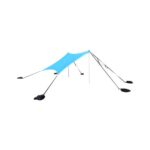 El Toldo de Playa Portátil Klimber tiene un tamaño de 198 cm de largo, 210 cm de ancho y 210 cm de alto, lo que te permite crear un espacio amplio y cómodo para disfrutar del sol. Su color azul claro le da un toque fresco y moderno a tu espacio. Además, está fabricado con materiales de alta calidad como Lycra, aluminio, PP, acero y plástico, lo que garantiza su durabilidad y resistencia. El toldo se puede anclar a la superficie o utilizar una base adecuada para mayor seguridad. Es importante recordar que en caso de viento fuerte, lluvia o nieve, se debe cerrar la sombrilla o desarmar el toldo para evitar daños.