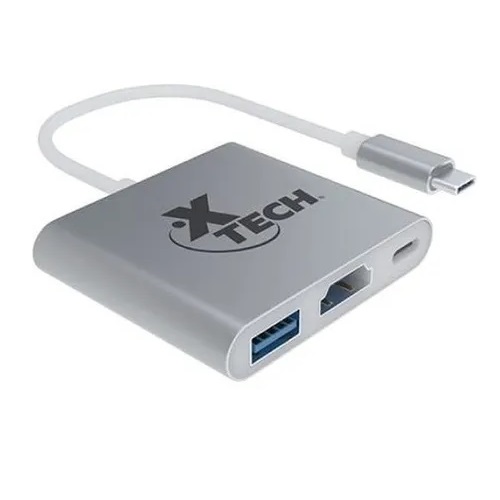 Adaptador Multipuerto Hub Xtech con Video (USB-C, HDMI, USB-A 3.0, Gris)